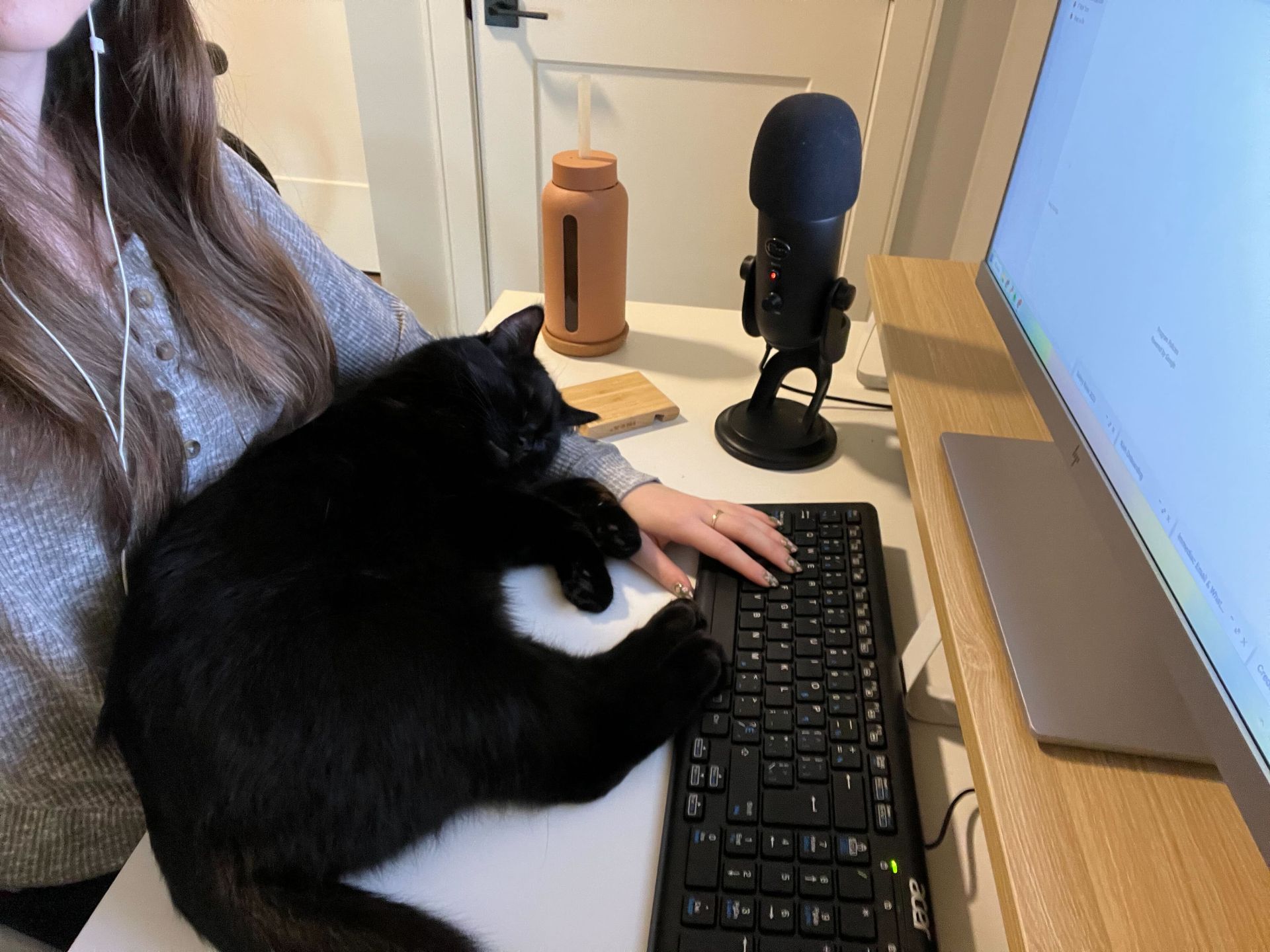 Alex has an adorable black cat named Mici.